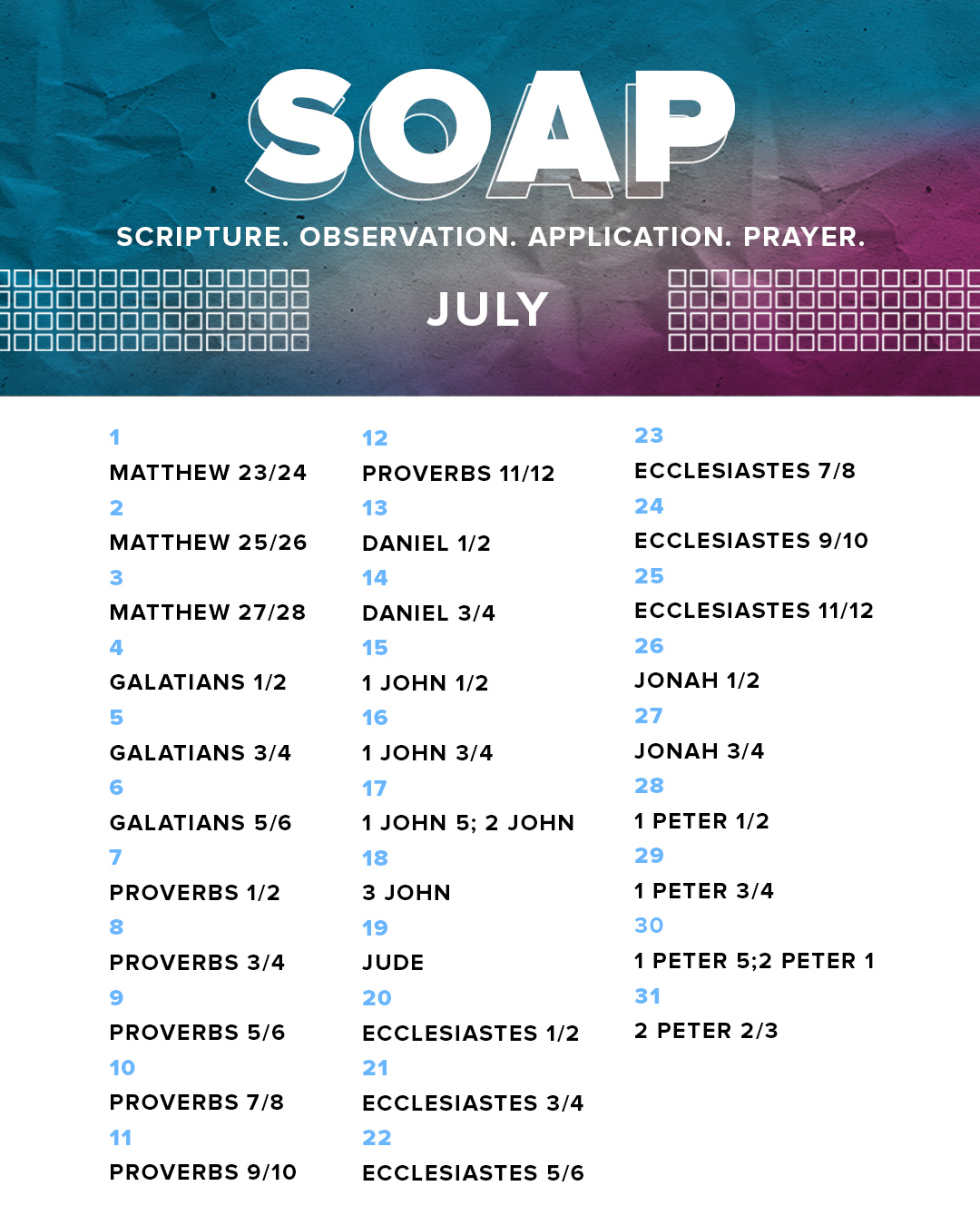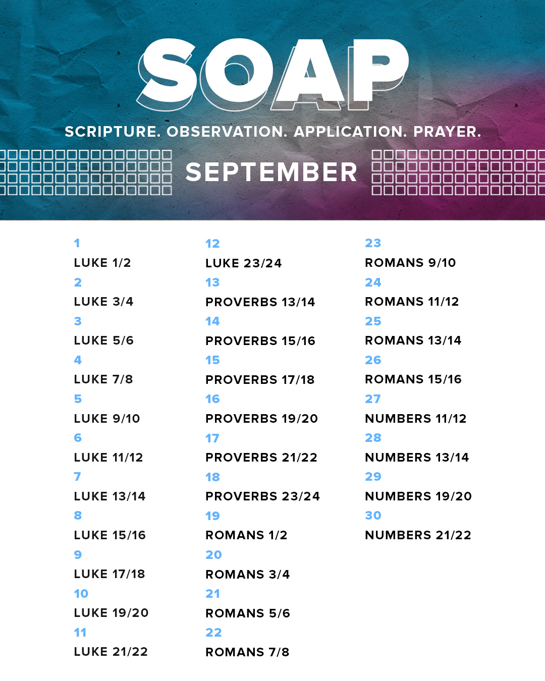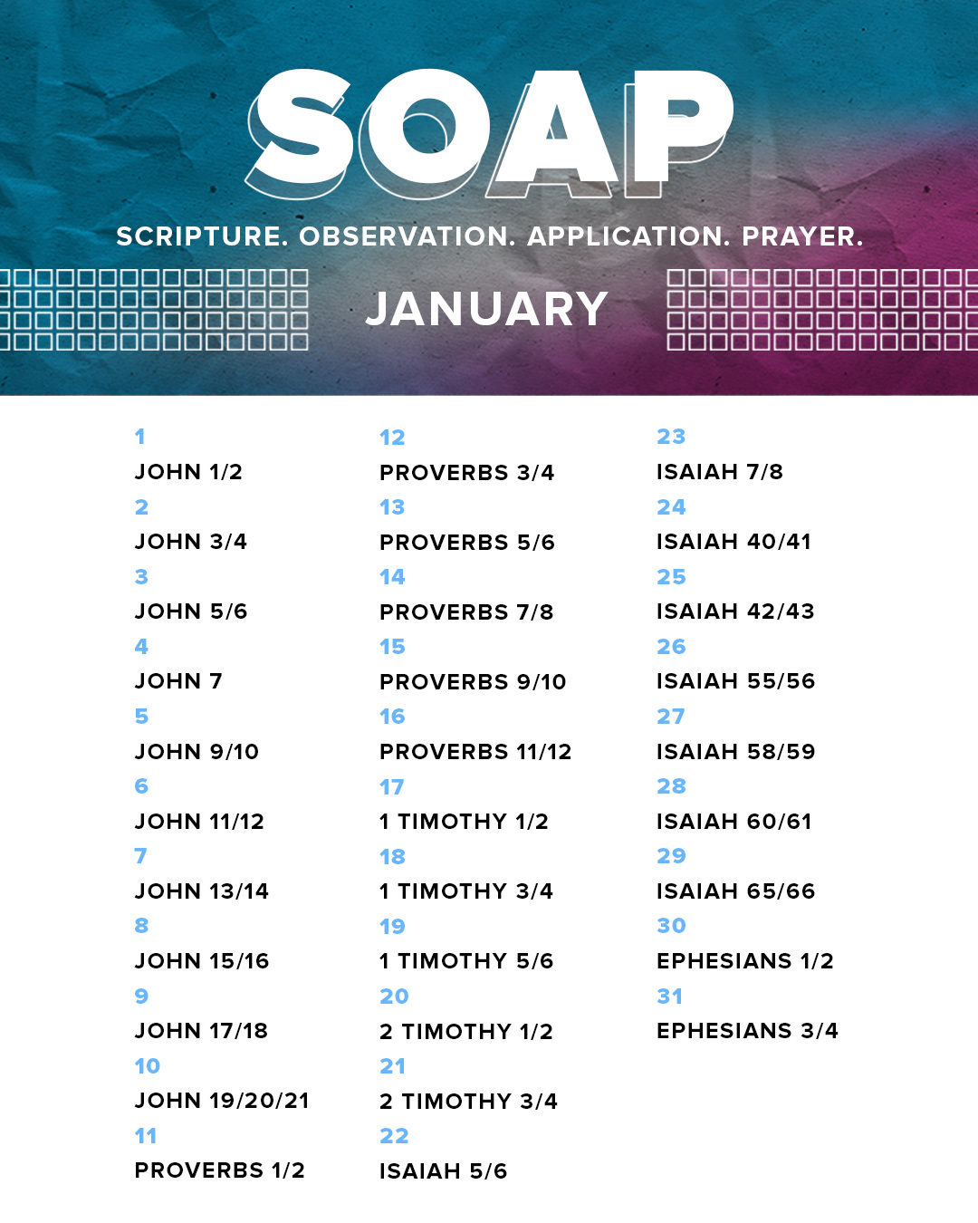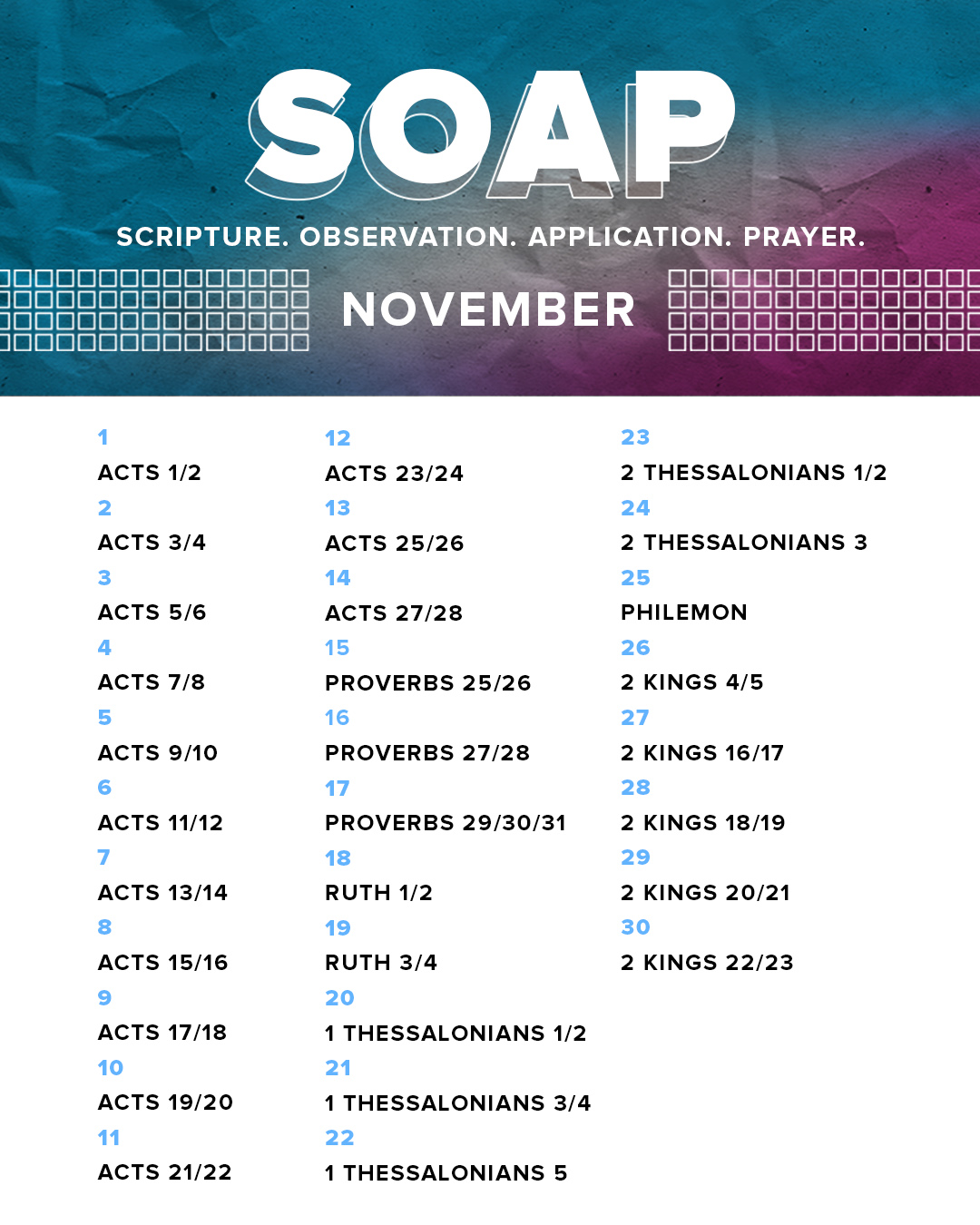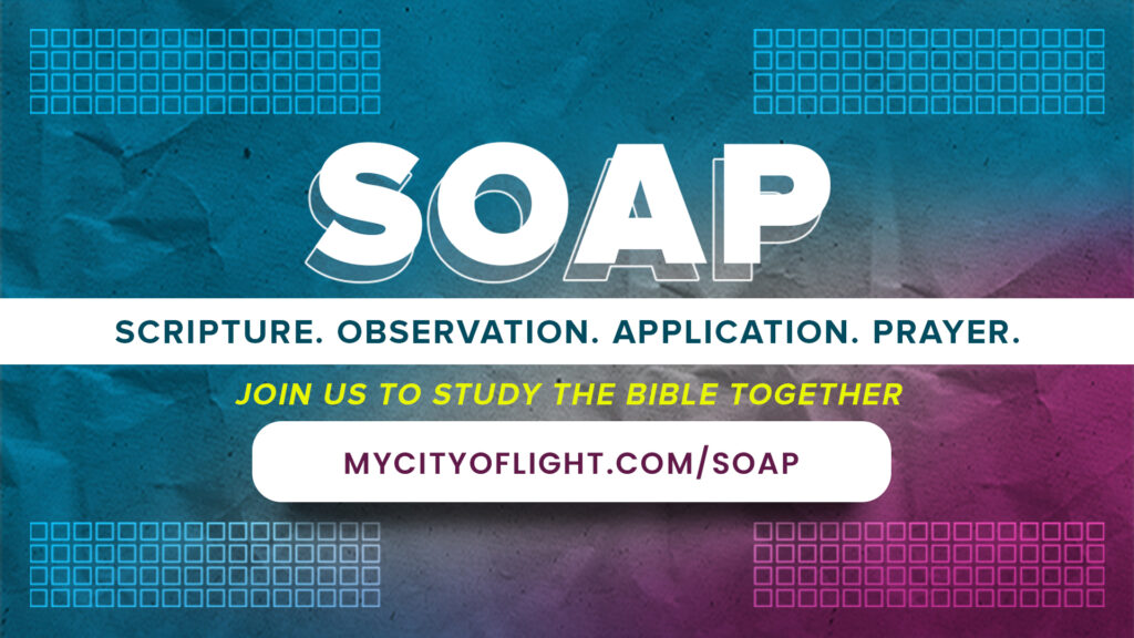 SOAP stands for Scripture, Observation, Application, Prayer—a simple way to journal your thoughts and reflect on God’s word.