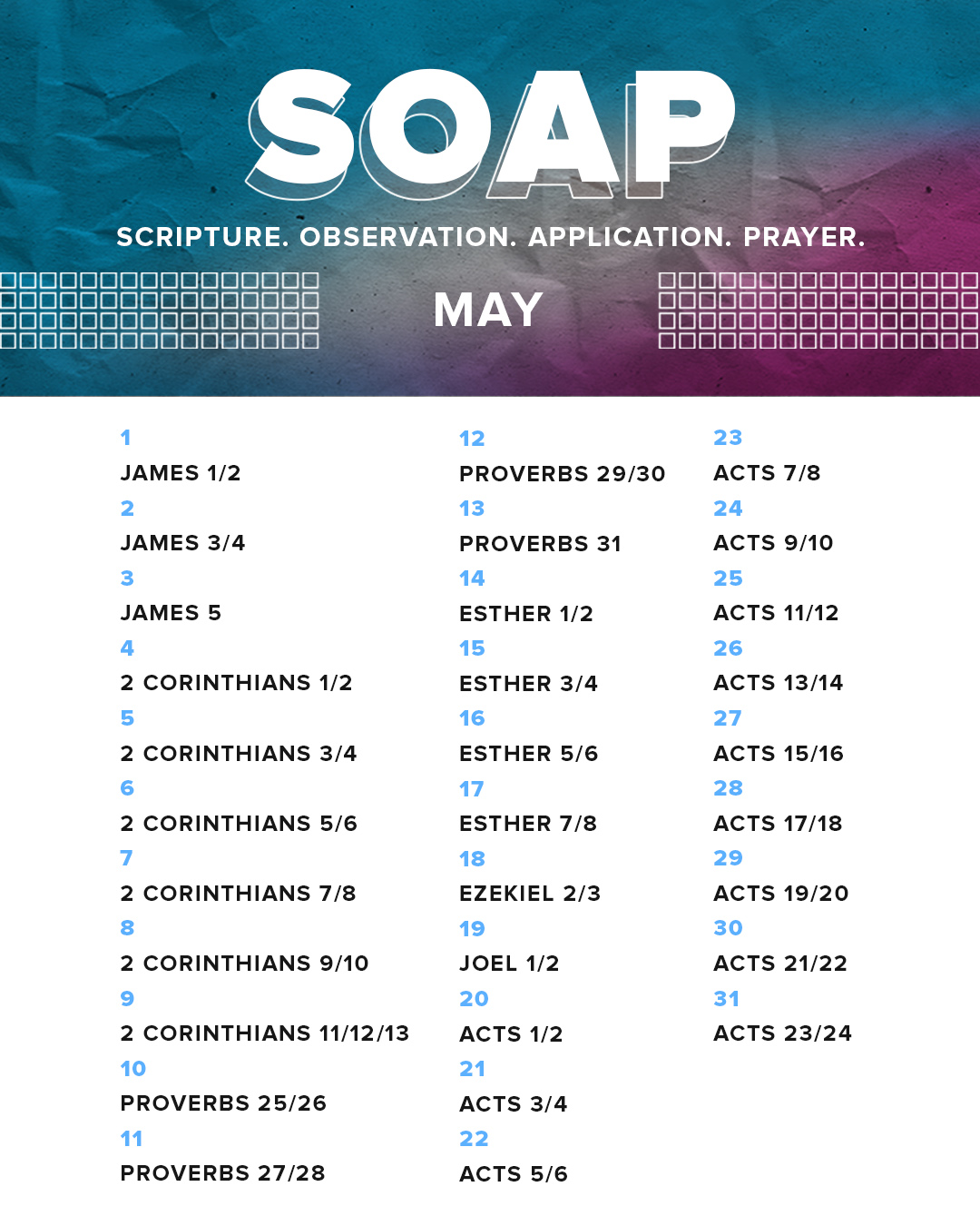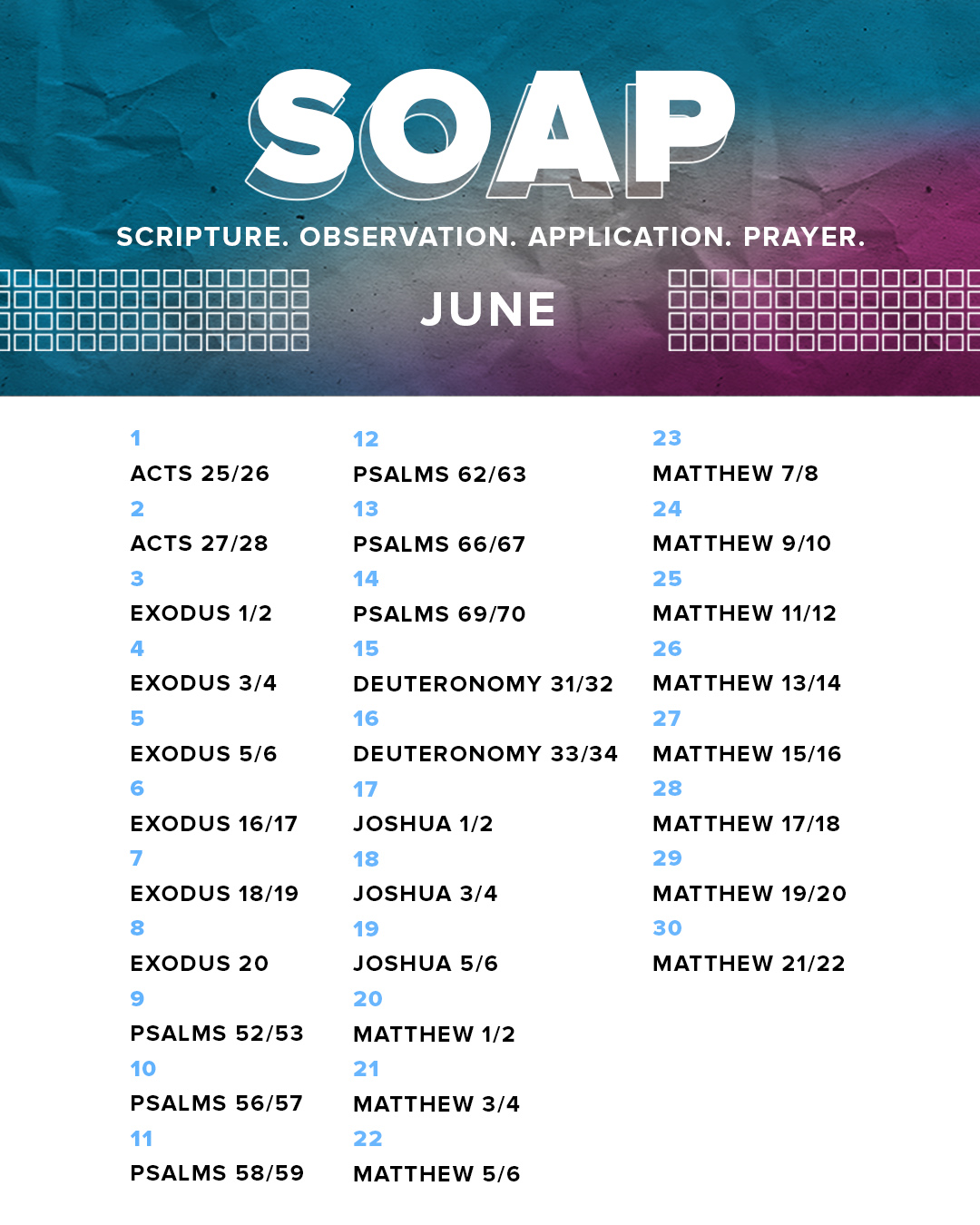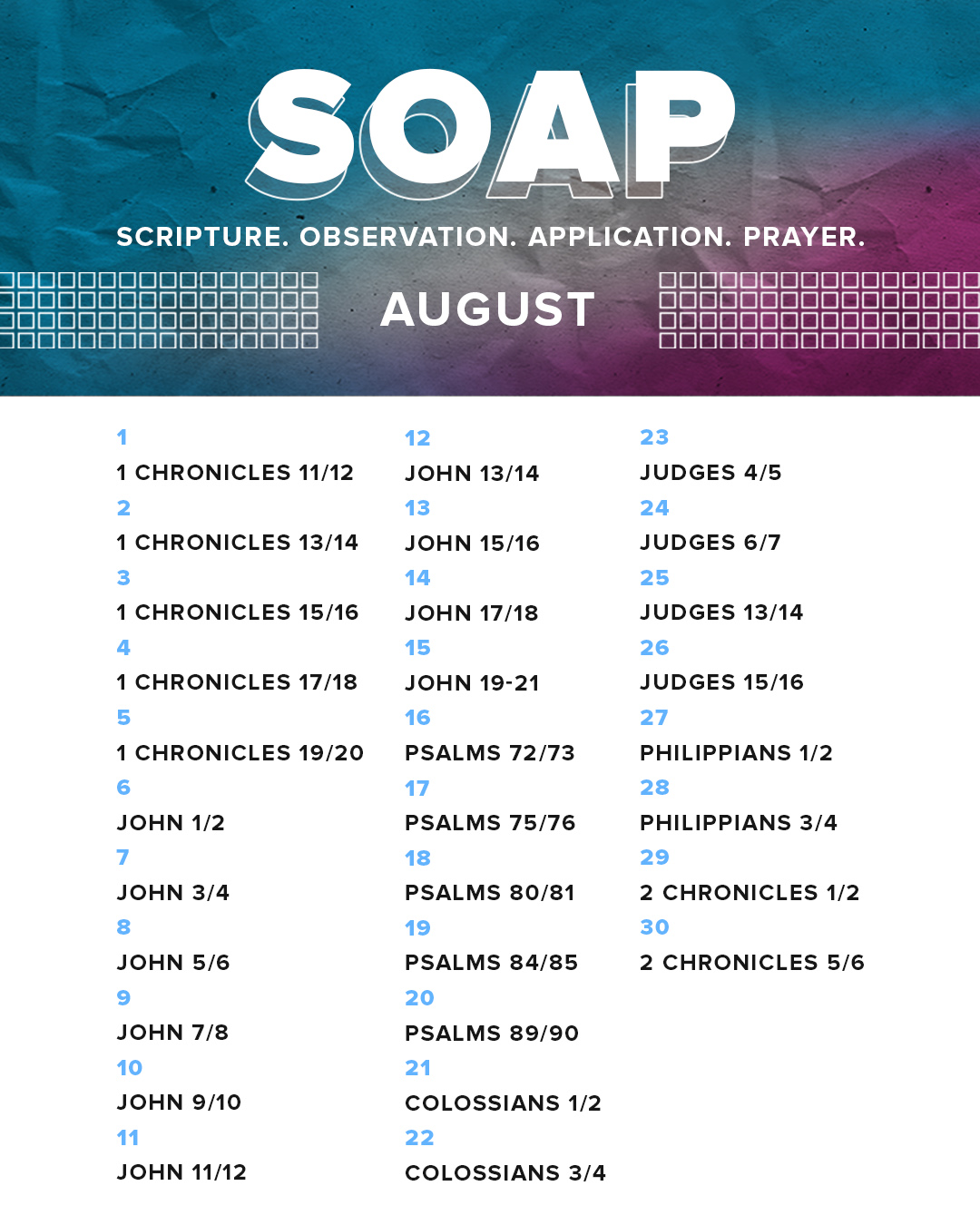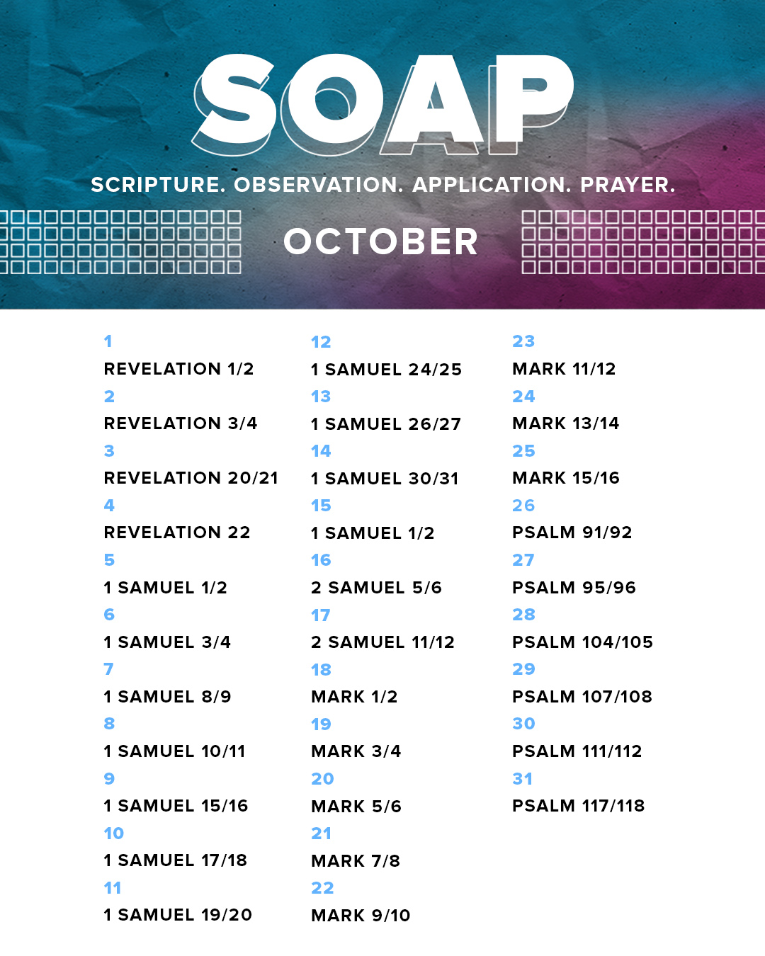 SOAP stands for Scripture, Observation, Application, Prayer—a simple way to journal your thoughts and reflect on God’s word.